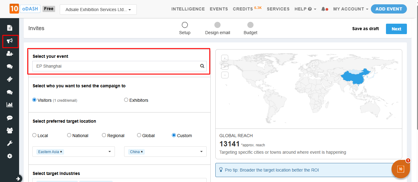 Marketing Credits can be used to run email campaigns and send targeted invites to visitors and exhibitors from 10times database.