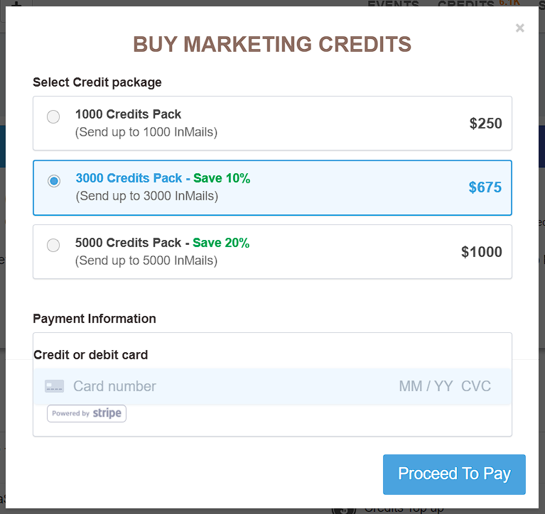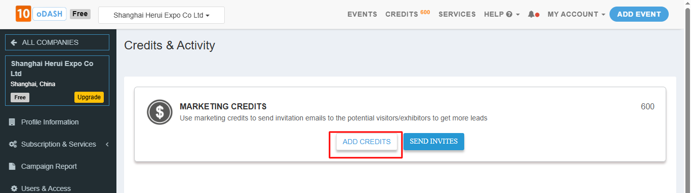 Click on “ADD CREDITS” under Marketing Credits